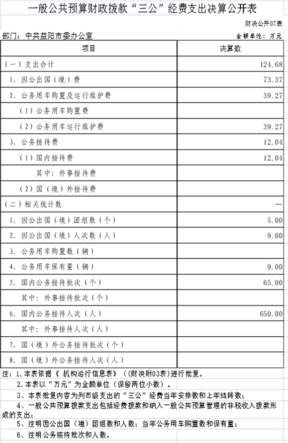 中共益阳市委办公室2019年部门决算公开