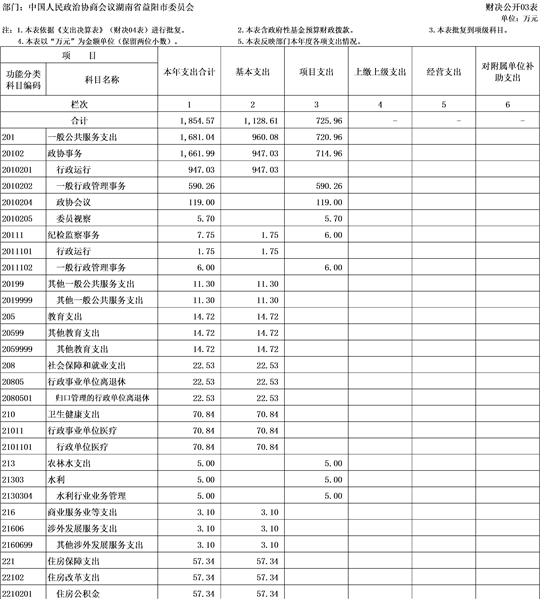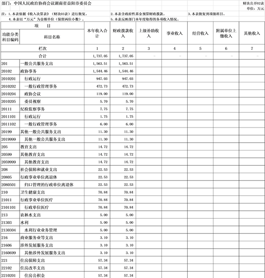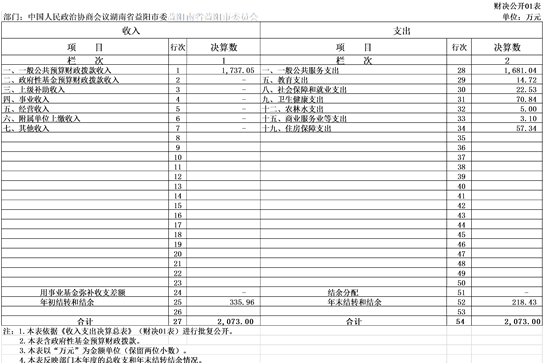 第二部分 中国人民政治协商会议湖南省益阳市委员会2019 年度部门决算表