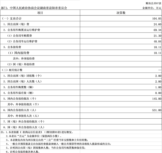 八、关于中国人民政治协商会议湖南省益阳市委员会2019 年度一般公共预算财政拨款“三公”经费支出决算情况说明