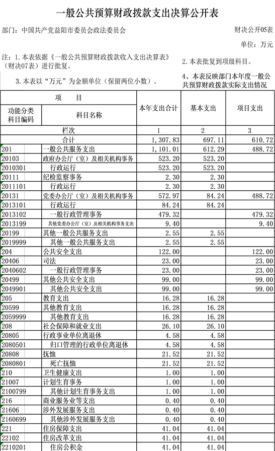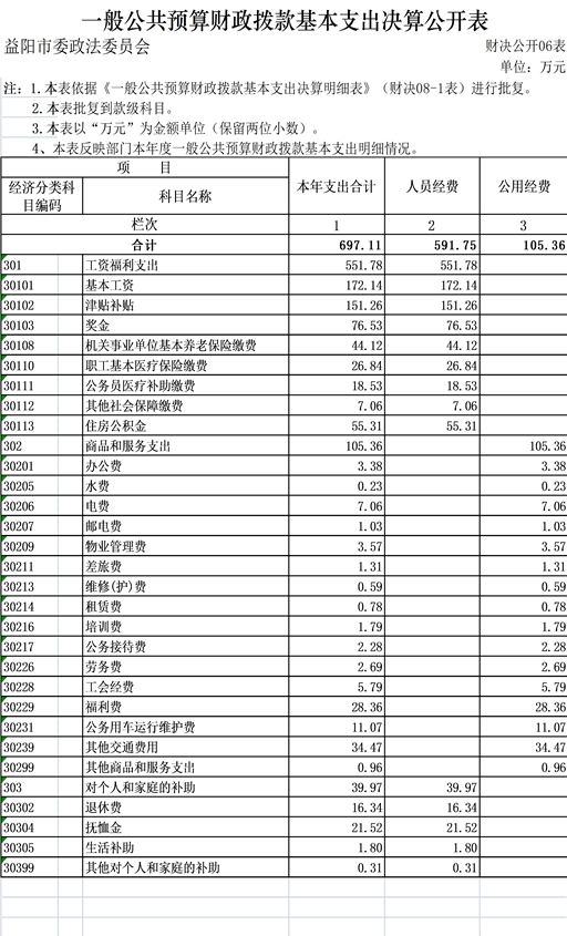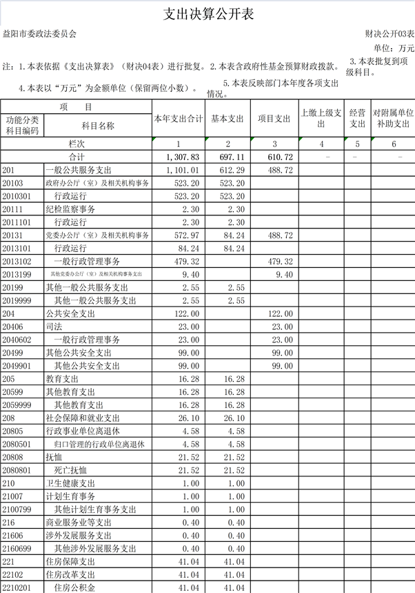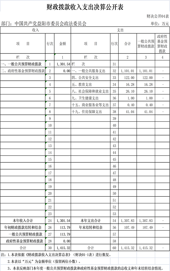 益阳市政法委2019年部门决算公开