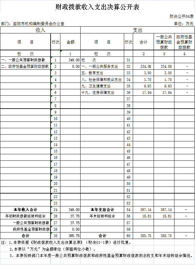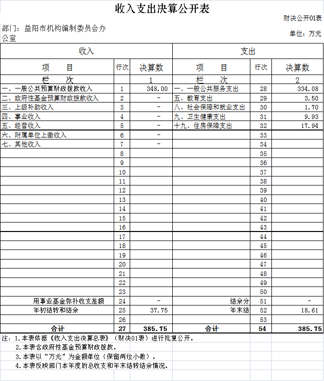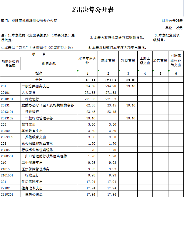 第二部分益阳市机构编制委员会办公室2019 年度部门决算表