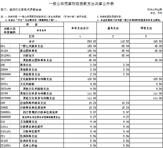 益阳市文学艺术界联合会2019年度部门决算公开(机关)