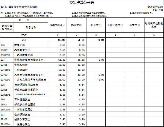 2019年度支出合计80万元,其中:一般公共服务支出75万元,占总支出的100%。主管部门市文联下拨经费缺口5万元,占总支出的6%。