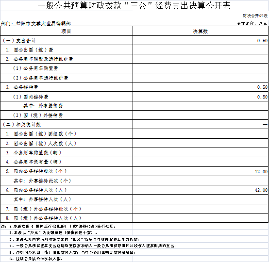 文学大世界编辑部2019 年度“三公”经费支出合计0.5万元,其中: