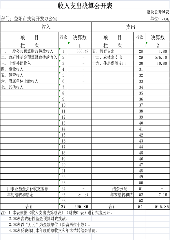益阳市扶贫开发办公室2019年度部门决算情况说明