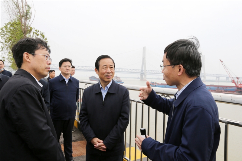 2020年4月22日,省委副书记、省长许达哲在岳阳市考察长江岸线整治、码头关停复绿等工作。