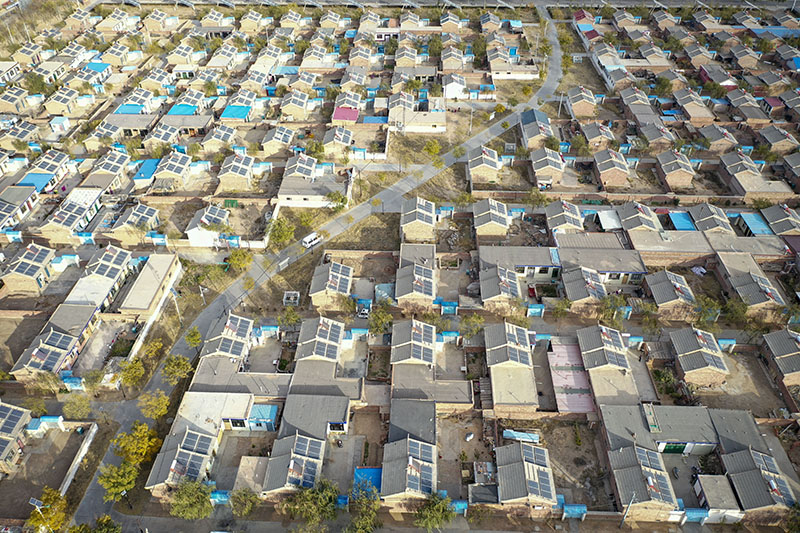山西大同市云州区坊城新村是易地搬迁村,2018年入住以来,依靠发展黄花特色产业等实现全部脱贫。