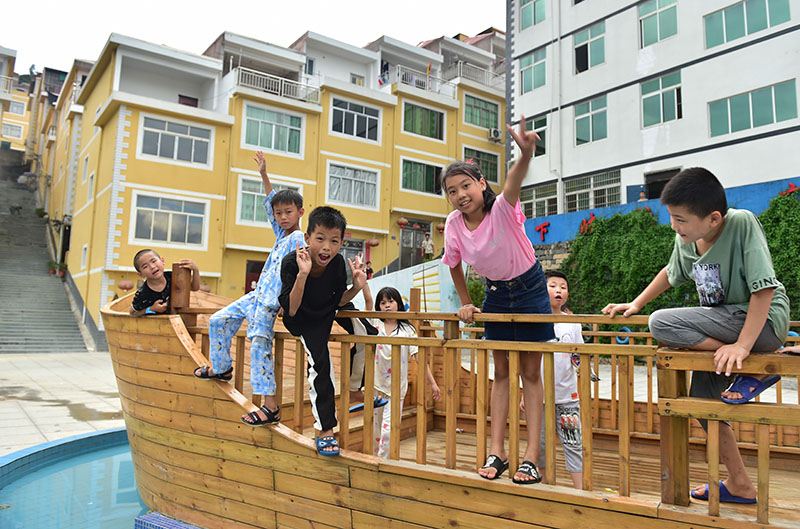 2019年8月22日,福建省福安市下岐村小朋友在下岐渔民广场前玩耍。新华社记者 林善传 摄