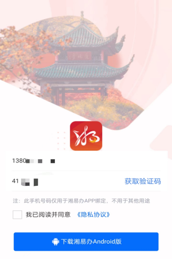 第4步:填入手机号码,填写好验证码之后,点下载“湘易办”APP。