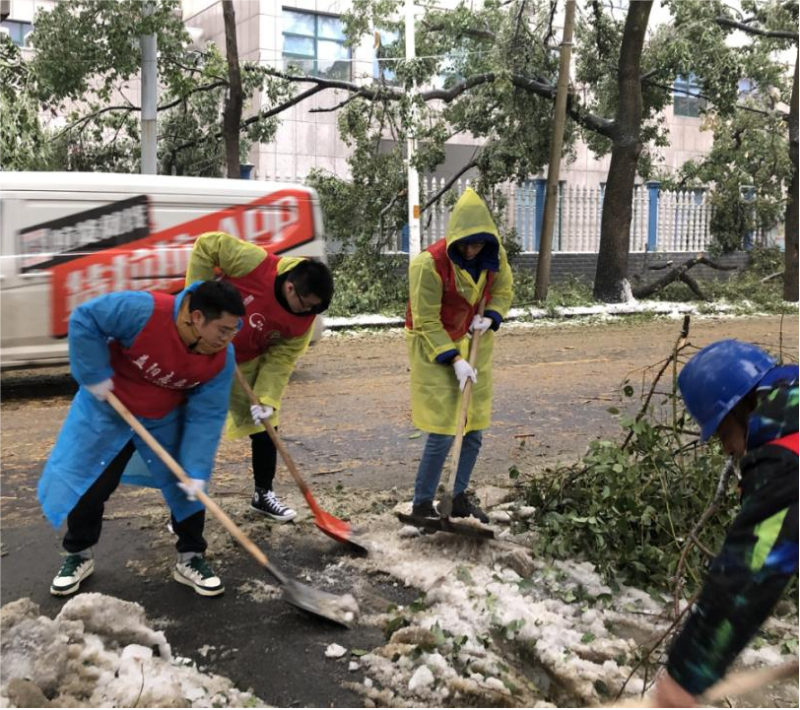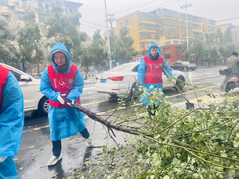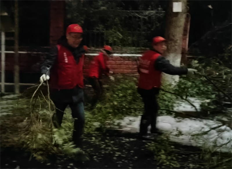 2月6—7日,市财政局派出四批志愿者分赴联点社区、包保路段、家属小区和机关院落,开展清扫积雪,裁剪隐患枝条,移除断枝等工作。6日上午,志愿者们来到财苑小区、机关院落扫冰除雪、清理树枝。同时,局青工委发布倡议书,号召全体青年干部奋勇争先,担当实干。下午青年志愿者们身着红马甲,精神抖擞地开赴人民路社区、汽车路段铲除坚冰,移除断枝,疏导交通,赢得了社区群众、过往行人的高度肯定。晚上10点,收到市政府总值班室通知后,机关创文办公室立即组织10多名志愿者开赴联点社区、包保路段清理主次干道树木、树枝,将其移除至指定地点,确保相关部门及时清运,方便居民第二天出行,确保道路安全畅通。