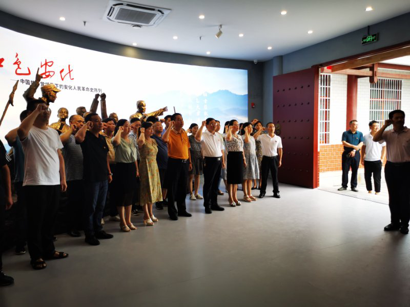 7月1日,安化县财政局党组书记、局长殷增业同志组织机关在职党员来到“红色安化”陈列馆重温入党誓词,学习安化革命历史和英烈事迹,开展党性教育,提升党员的党性修养。