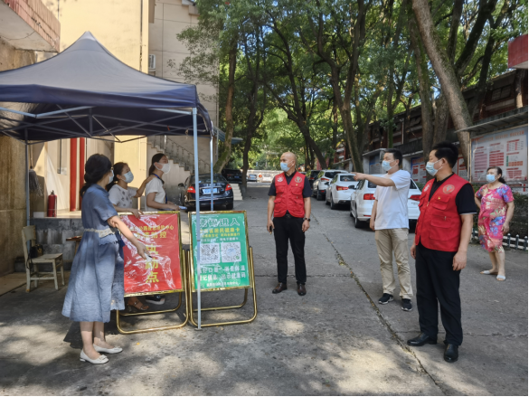 8月5日一大早,中心副主任姚雪华带领邓伟强、陶家喜、王富、龙军辉四名党员志愿者到达龙岭工业园天子坟社区开展工作。8月6日,中心增派8名同志支援驻地社区南站社区疫情检疫工作。盛夏时节,高温酷热,志愿者们在核酸检测点帮助社区维持现场秩序,提醒居民保持安全距离、有序排队,帮助老人们提前扫码预约检测,他们顶着酷暑,带着爱与责任冲在保护人民群众生命健康的第一线。
