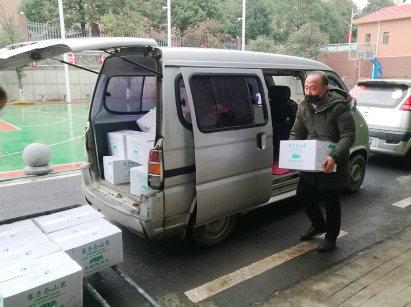 2月10日,赫山区寨子仑山泉水厂负责人朱国伏向益阳市慈善总会捐赠了40件瓶装寨子仑山泉水和20件安慕希牛奶,价值近3000元。朱国伏请市慈善总会将这批物资赠给益阳的志愿者、一线的交警和医务人员。他说:“新冠肺炎疫情当前,尽管不能像医生、护士、交警等一线工作者一样冲锋陷阵,但作为一名军人家属,也希望能够尽一份微薄之力。“