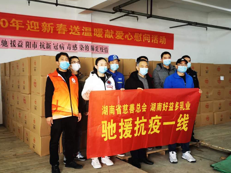 2月13日,益阳市慈善总会接收了一批省慈善总会下拨的爱心物资——3000箱好益多乳酸菌饮料。来自益阳市民政局的爱心志愿者以及公安民警、蓝天救援队队员集中搬卸这引批爱心物资。在特殊时期,市慈善总会每接收一批爱心物资,都能看到身穿红马甲的民政人。不管是凌晨,还是深夜,他们尽己所能支援防疫,为打赢防疫阻击战贡献力量。当日,益阳市慈善总会向益阳市公安局和蓝天救援队发放了爱心物资。