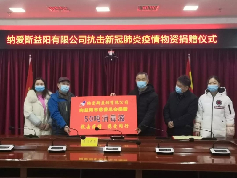 “你好,我们纳爱斯想捐赠50吨84消毒液……”“市慈善总会吧?我们民建益阳企业家联谊会募集了10.8万元爱心款……”2月12日上午,纳爱斯益阳有限公司和民建益阳企业家联谊会分别通过益阳市慈善总会向在一线抗疫的工作人员捐款捐物,为他们抗击疫情保驾护航。市政协副主席、民建益阳市委主委曾斌,企业家联谊会会长龚光明,纳爱斯益阳有限公司工会主席谢俊军,益阳市民政局党组成员、副局长、益阳市慈善总会常务副会长兼秘书长贵秋民,市民政局党组成员、市纪委驻市民政局纪检组长陈中茂等分别出席捐赠仪式。