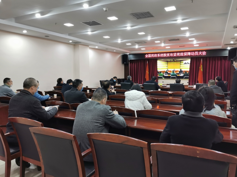 为深入学习贯彻习近平总书记关于脱贫攻坚和疫情防控等重要指示精神和党中央决策部署,交流民政领域脱贫攻坚兜底保障工作情况,动员部署全国民政系统统筹安排新冠肺炎疫情防控与决战决胜民政脱贫攻坚兜底保障工作,3月8日上午,民政部组织召开了全国民政系统脱贫攻坚兜底保障动员电视电话大会。