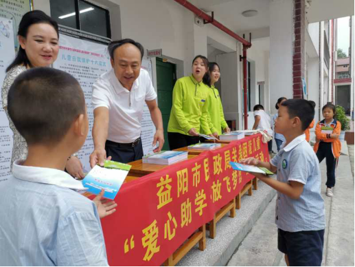 为进一步做好农村留守儿童、困境儿童关爱保护工作,为益阳农村留守儿童、困境儿童的茁壮成长创造有利条件,9月11日上午,益阳市民政局、市未成年人保护中心、市民政局驻安化县马路镇马辔市村扶贫工作队在安化县马路镇完小联合开展了关爱留守儿童、困境儿童“爱心助学·放飞梦想”公益活动。此次活动,市民政局共向马路镇完小的40名留守儿童和困境儿童捐赠四万元的爱心助学资金,并赠送了书包、文具等爱心礼物。