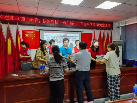 六一前夕,益阳市民政局机关支部组织党员社工走进赫山区石头铺“四点半学校”开展“我为群众办实事”实践活动,利用局机关支部党员队伍中社工的专业优势,以宣讲共产党精神谱系内容和“红色记忆猜猜猜”党史知识抢答形式和孩子们一起上了一堂生动活泼的党史学习教育课,通过重温红色历史记忆,让红色记忆滋润着“四点半学校”的每一个孩子。活动最后,机关支部向社区赠送了图书画册,提前给孩子们送上了“六一节”礼物。目前,我市共有80所“四点半学校”,由市慈善总会负责统筹安排建设,采取购买社工服务等形式有效解决了学生放学后无人看管难题,社会反响良好,真正实现了“孩子开心、家长放心”的目标。