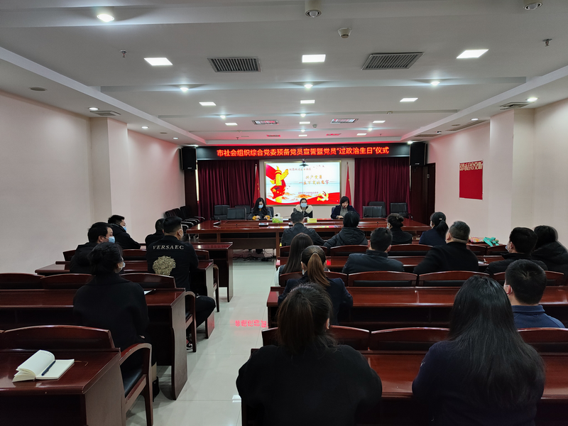 1月19日下午,市社会组织综合党委在市民政局三楼视频会议室举行预备党员入党宣誓仪式暨党员“政治生日”活动,市社会组织综合党委及市社会组织综合党委基层党组织29名党员参加活动。市委两新工委办公室易宇主任出席活动。