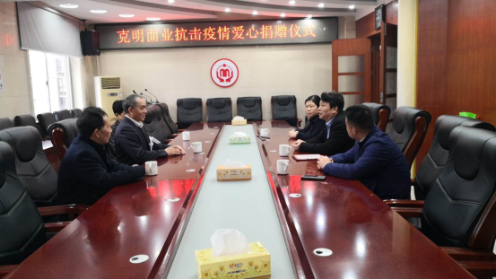 3月28日,克明面业股份有限公司为家乡抗击疫情捐款50万元,县委常委、常务副县长郭世奇,克明面业集团董事长陈克明、县民政局、县慈善会负责同志一同参加了捐赠仪式。