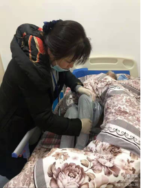 卧床老人,每两小时一次的翻身按摩,能改善老人的血液循环预防压疮的发生。