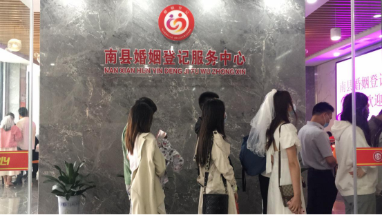 截至5月20日中午,南县婚姻登记服务中心共办理结婚登记75对,比平时的登记人数高出10倍还要多,较往年同期有较大提升,创下了历史新高。
