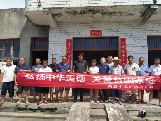 杨璇目前就读于青树嘴镇中学,是一名品学兼优的学生。由于母亲身体一直都不好,长期吃药,经济来源也主要是靠父亲收破烂和打零工,家庭经济状况比较困难。南县小龙虾协会支部书记陈明亮通过青树嘴镇民政办的牵线搭桥,了解到有关情况后,及时组织召开支部会议共同研究帮扶措施。决定除了给予生活上的关心外,还决定以后每年都给予一定的物资资助。