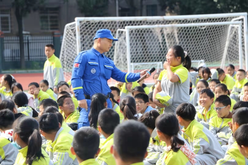 疏散演练结束后,蓝天救援队的消防宣传员对疏散逃生进行了点评,并结合校园安全工作特点及小孩的火灾事故典型案例,用通俗易懂、生动有趣的语言讲解了防火灭火的基本知识,向师生们讲解了常见的火灾原因、如何报火警、如何使用灭火器、如何扑救初期火灾等知识,并针对日常火灾的自防自救常识特别是小孩子在遇到火灾时的自我保护进行了讲解。从家庭生活到校园生活,到周边环境可能发生火灾的安全隐患,讲解的面面俱到,使师生们掌握到消防安全知识,有效地增强学生们的消防安全意识。