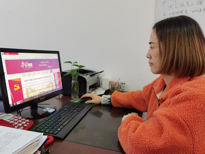 (图为赫山民政局工作人员利用学习强国平台进行理论学习)