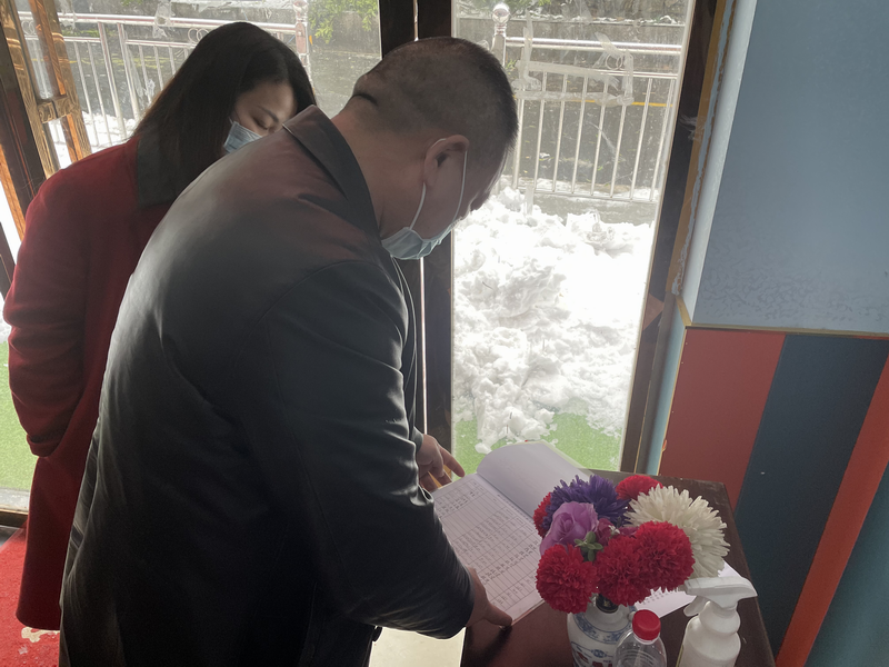 在沧水铺镇敬老院大门口,有专人负责疫情防控检查,对检查组的同志进行体温测量、健康码和行程码检查,都能做到规范有序,各种登记一目了然。