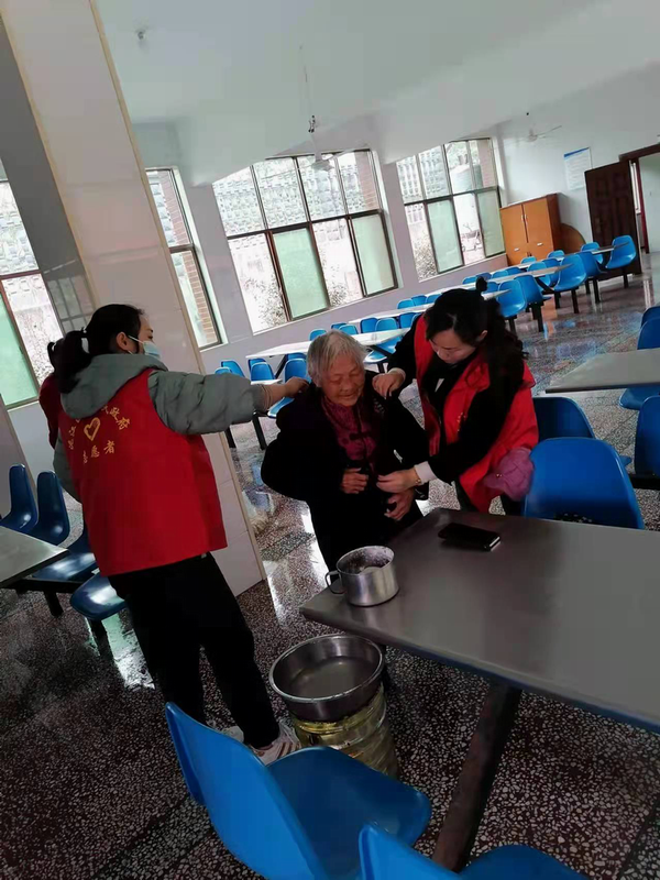 在泥江镇中心敬老院,志愿者们按着分工,分头行动。为老人理发耐心细致、打扫环境卫生一丝不苟。与老人谈心聊天,拉家常、话趣事,在一老一少的互动中,心与心的距离拉得更近了,情与情的交流贴得更深了。大家还精心检查院内的用电情况,更换老旧线路,消除安全隐患,为老人用电安全提供可靠保障。