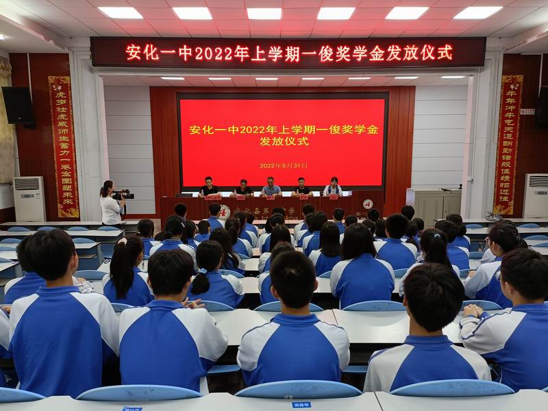 5月31日,安化一中、安化二中举行2022年夏季“一俊奖学金”发放仪式,150名品学兼优的寒门学子共收到爱心善款30万元,每名学子获得奖学金2000元。