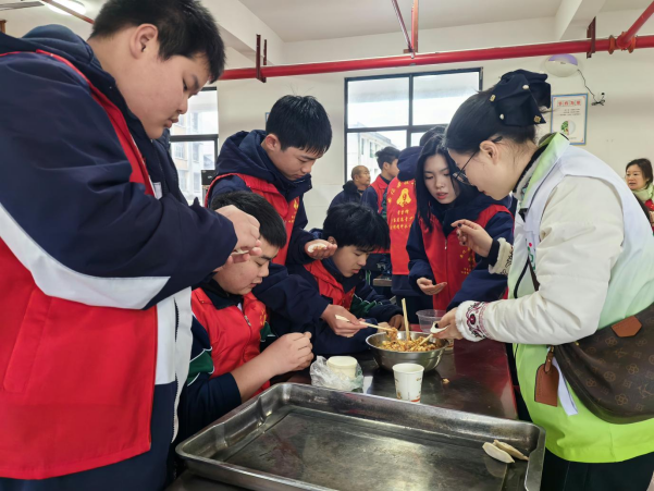 随后,大家来到敬老院食堂,和老人们一起包饺子。大家分工协作,揉面、擀皮、调馅、包饺子,动作娴熟,现场欢声笑语不断。一个个饱满圆润的饺子,不仅包裹着美味,更承载着对老人们的深情厚意。