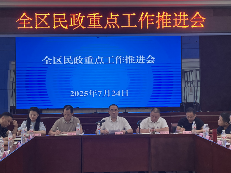 2025年7月24日,益阳市赫山区民政局召开民政重点工作推进会议,深入贯彻落实习近平总书记关于民生保障和乡村振兴的重要指示精神,全面部署社会救助、养老服务、脱贫攻坚与乡村振兴有效衔接等重点任务。副区长雷鹏出席会议并讲话,区民政局领导班子成员、各乡镇(街道)民政分管领导、社会事务办主任及民政局中层骨干近50人参加会议。