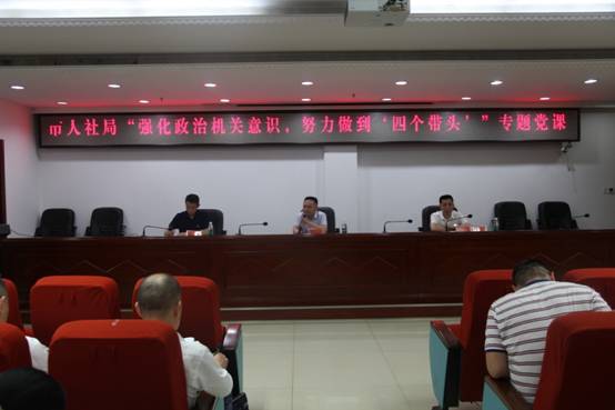 最后,陈燕群以《强化政治机关意识、努力做到四个带头”》为题,紧密结合人社工作实际,给全局党员干部上了专题党课。陈燕群从带头坚持“两个维护”,争做政治鲜明的清白人、带头深化理论武装,争做笃学深思的好学人、带头夯实基层基础,争做组织建设的推动人、带头推进正风肃纪,争做优良作风的踏实人等四个方面要求党员干部在习近平新时代中国特色社会主义思想指引下,强化政治机关意识、强化担当精神,扛牢机关党的建设政治责任。推动机关党的建设高质量发展,推动人社事业高质量发展(彭静)。