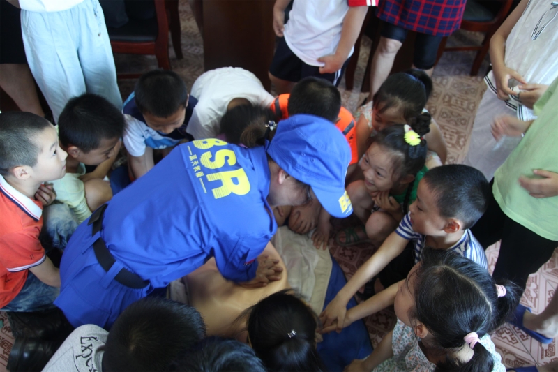 首先,社区青少年围坐在会议室,由市人社局信访科科长陈清文讲述“益阳第一面党旗”故事,深入浅出的传达了共产党人不屈不挠的爱国主义精神。随后,蓝天救援队的专家为青少年做防溺水安全知识宣讲,专家以人体模型为工具,生动地讲解了心肺复苏的具体步骤,面对猫狗咬伤、不慎落水的自救措施。