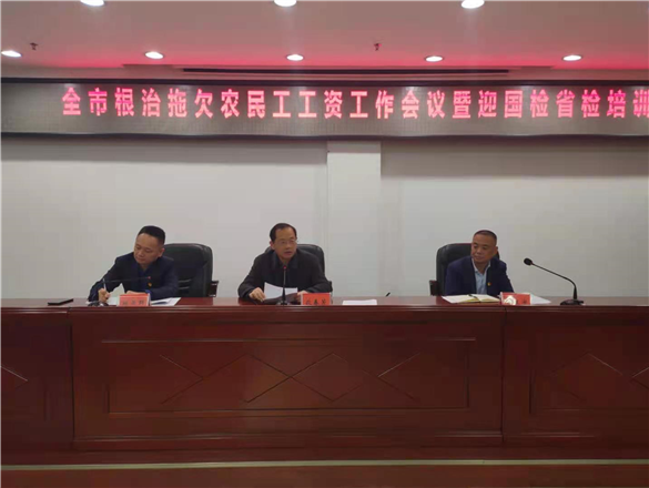 会上,市人社局总经济师舒正宇对全市根治拖欠农民工工资工作进行总结和部署,强调加强源头治理、依法治理,健全治理欠薪长效机制,推进根治拖欠农民工工资工作向纵深发展。