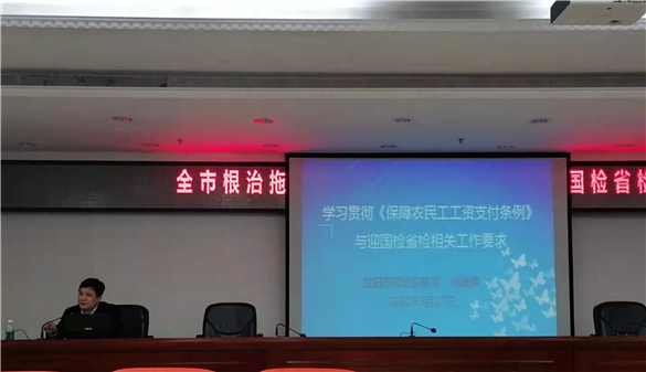 3月17日,益阳市2021年根治拖欠农民工工资工作暨迎国检省检培训会议在市人社局召开。市人社局党组书记、局长陈燕群主持会议,市根治拖欠农民工工资工作领导小组成员单位分管领导、相关科室负责人,各区县(市)分管副县长、人社局分管领导、劳动监察部门负责人及相关工作人员,部分在建项目建设单位负责人,施工总承包单位负责人、项目负责人、劳资专员共190余人参加。