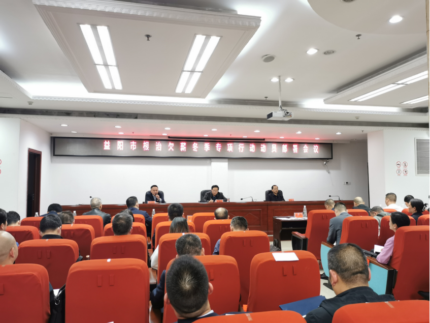 为及时抓好会议精神贯彻落实,益阳市接着召开全市根治欠薪冬季专项行动动员部署会议。参加会议的有市、县两级根治拖欠农民工工资工作领导小组成员单位主要负责人,各区县(市)人民政府分管负责人、人社局、劳动监察部门主要负责人及相关工作人员。市政府副厅级领导喻国良主持会议,市政府副秘书长欧春芳作部署动员讲话。
