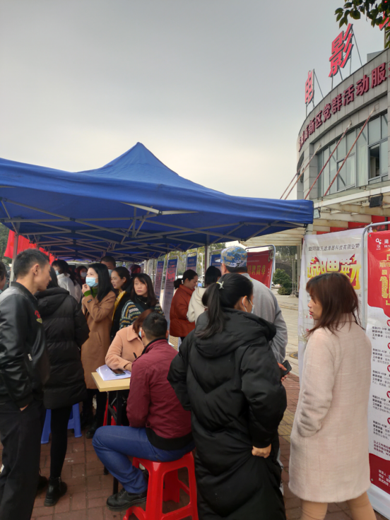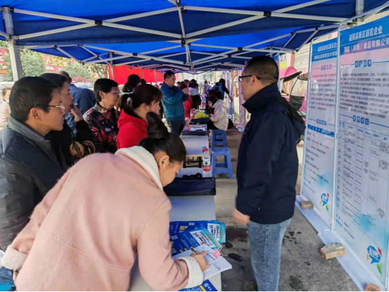 谢林港镇专场招聘会在谢林港镇好日子超市前举行,招聘现场人来人往,不少招聘台前挤满了浏览、咨询、登记的求职人员,用工单位人力资源负责同志坐镇揽才,热情地向求职者宣传企业生产情况和工资福利待遇。玉皇庙村刘女士在国联食品的招聘展位前一边填表登记、一边同我们攀谈。她表示,过了年准备外出找工作的,家里婆婆身体不好一直在照顾,前段时间村干部几次上门推荐岗位,考虑了一段时间,得知今天家门口举办招聘会,便专门前来,在镇上班离家近方便照顾,提供的工资待遇也还不错,她非常心动,当场表示立即可以上岗。