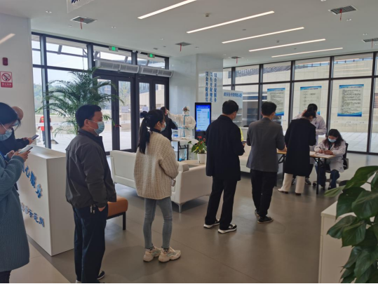 近日,新冠疫情在全国多点复发,益阳南县和长沙等周边地区均出现确诊病例,为确保市人社政务大厅工作人员和办事群众的安全,市人社局联系市四医院到政务大厅开展全员核酸检测工作。检测现场井然有序,全体人员分批次有序参与核酸检测,自觉佩戴口罩,测量体温,保持一米线排队。