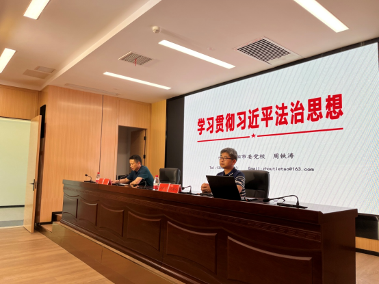 为深入学习贯彻习近平法治思想,提高全局干职工的法治思维和依法行政能力,6月9日,益阳市人社局邀请中共益阳市委党校副校长、法学教授周铁涛为全局干职工进行习近平法治思想专题辅导。益阳市人社局党组成员、副局长张建威主持。