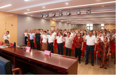 6月29日,市人社局市民服务中心E区大会议室举办庆祝建党101周年大会,会前,领导班子带领全体干职工一齐奏唱国歌,并举起右拳,重温入党誓词。铮铮誓言,字字千钧。