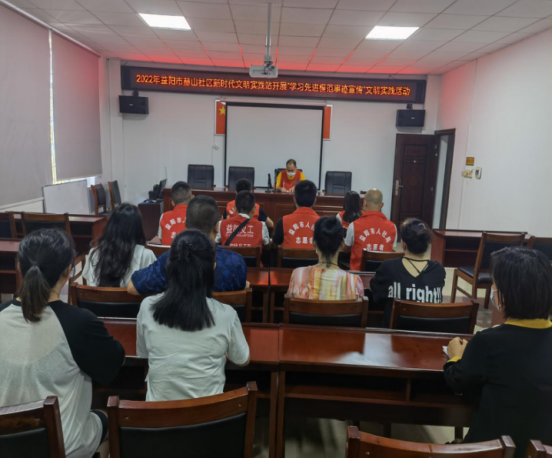 为了深入新时代文明实践场所开展先进典型学习宣传,广泛宣传社会主义核心价值观,8月19日上午,益阳市人社局组织10名志愿者来到赫山街道赫山社区新时代文明实践站开展“学习先进模范事迹”宣讲活动和“四清一养成”志愿服务活动。