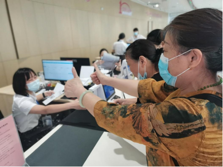 图为:群众对工作人员的服务进行点赞