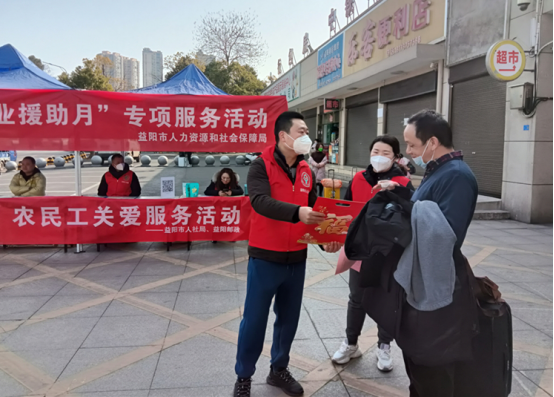 随着新春佳节和返程高峰临近,越来越多的农民工开始返乡,为让返乡农民工感受到欢乐祥和的节日氛围和家乡的关心关爱,1月18日益阳市人社局联合益阳市邮政分公司在益阳火车站开展了农民工关爱服务活动。