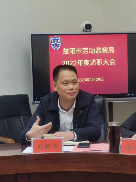 1月29日上午,益阳市劳动监察局召开2022年度述职大会,局全体干职工参加会议。市人社局党组成员、副局长龙明涛出席会议。