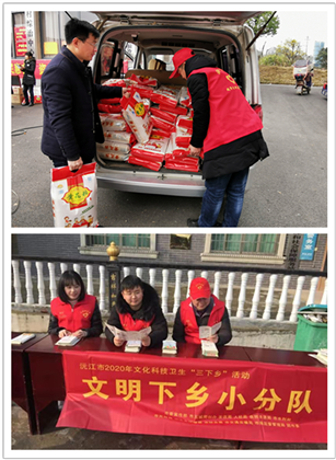 1月17日、1月19日,沅江市人社局组织队伍赴阳罗洲镇七子浃村、泗湖山镇光复垸村、新湾镇新湾村等地开展“三下乡”活动。