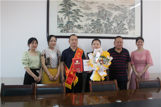 6月17日,县妇联主席郝文辉一行前往县人社局,将2020年度益阳市“最美家庭”荣誉证书送到人社局干部职工杨玉琴同志及其丈夫的手中,并送上鲜花表示祝贺。