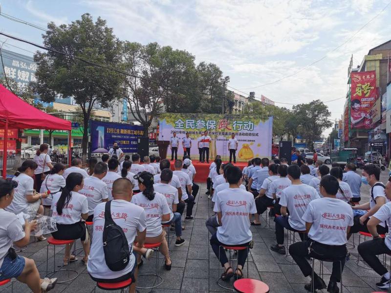 近日,一场由桃江县人力资源和社会保障局、国家税务总局桃江税务局主办、县社会保险服务中心承办的“桃江县城乡居民养老保险集中月宣传活动启动仪式”在桃花江镇隆重举办。县政府办副主任孙大军同志、县人力资源和社会保障局局长徐灿红同志、国家税务总局桃江税务局局长肖志芳同志等领导出席并致辞,县人社、县税务、全县十五个乡镇社会事务中心主任等70多名干部参加启动仪式。县政府办副主任孙大军同志现场宣布桃江县城乡居民养老保险全覆盖集中宣传月活动正式启动。